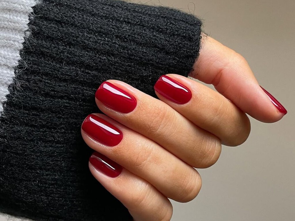 Borgoña presque noir : idéale pour celles qui veulent une manucure chic et intemporelle. Ce rouge sombre, tendant vers le presque noir, fonctionne parfaitement sur des ongles courts ou de longueur moyenne, surtout en forme amande. Il apporte une élégance discrète et une forte présence.