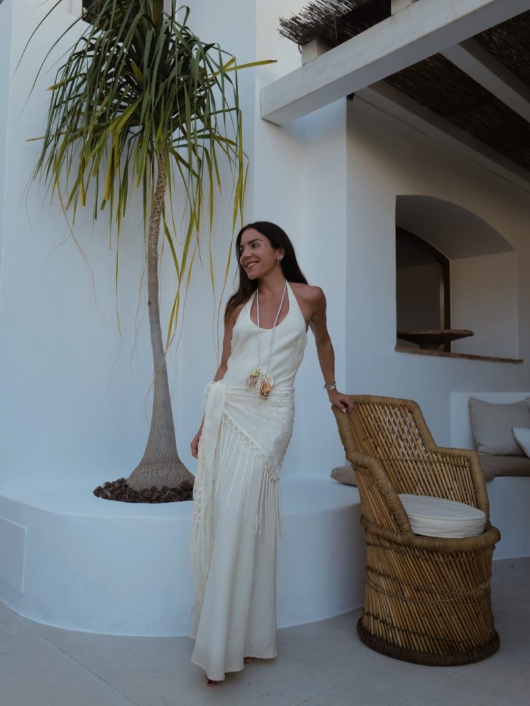 • Look brunch : robe midi fluide écrue + sandales Toni Pons + panier en osier = élégance effortless.