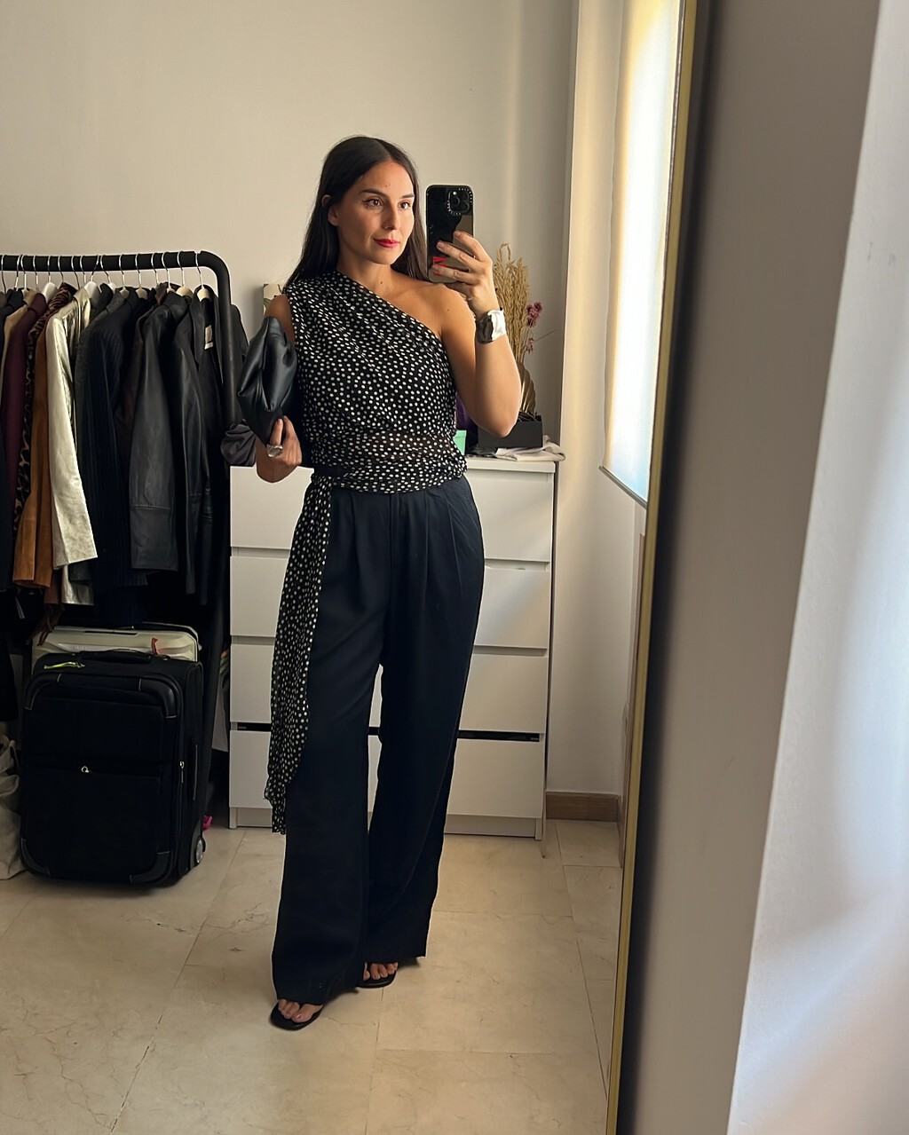 Pour mes journées de courses, de rendez-vous ou de balades en ville, le duo blouse oversize et jeans reste inégalé. Le denim apporte du caractère et tempère la délicatesse d’une blouse blanche fluide. J’aime ajouter un petit foulard pastel autour du cou ou au poignet pour apporter une touche de couleur, et un sac métallisé pour donner du pep’s au tout. Les jeans à coupe large ou à ourlet retourné, très à la mode, s’harmonisent parfaitement avec l’allure ample du haut et donnent un côté résolument moderne sans effort.