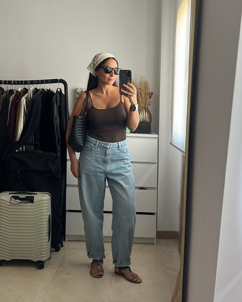 • Casual du quotidien : jean droit cropped + chemise à rayures rentrée pour un rendu soigné mais sans effort.
