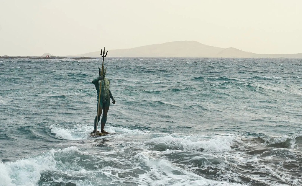 La beauté du Neptune de Melenara tient aussi à sa vulnérabilité apparente. Installée en pleine mer, la statue subit les humeurs de l’océan : vagues, embruns, tempêtes. Cette exposition extrême a même provoqué des dégâts — en 2010, la statue a perdu un bras et son trident lors d’un violent coup de mer, nécessitant une restauration. Ce passage par la réparation renforce paradoxalement son charme : elle témoigne d’une relation vivante entre l’objet d’art et son environnement, d’une histoire marquée par les éléments.