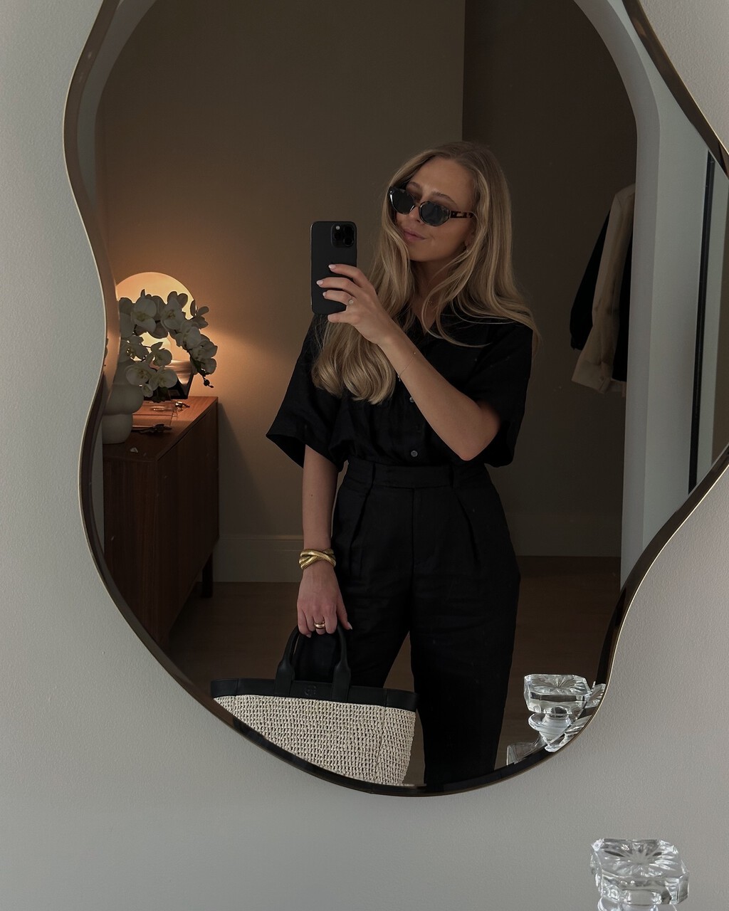 Les looks monochromes ou bicolores restent les plus élégants pour ce type de pantalon. Associez-le à du blanc cassé, du beige sable ou, pour un effet plus audacieux, à une pièce à imprimé animal discret. Si vous voulez pousser l’idée « dressing chic sans se ruiner », un sac style Miu Miu peut faire des merveilles — mais nul besoin d’atteindre ce budget : des alternatives plus abordables peuvent donner une impression similaire et élever instantanément une tenue casual.