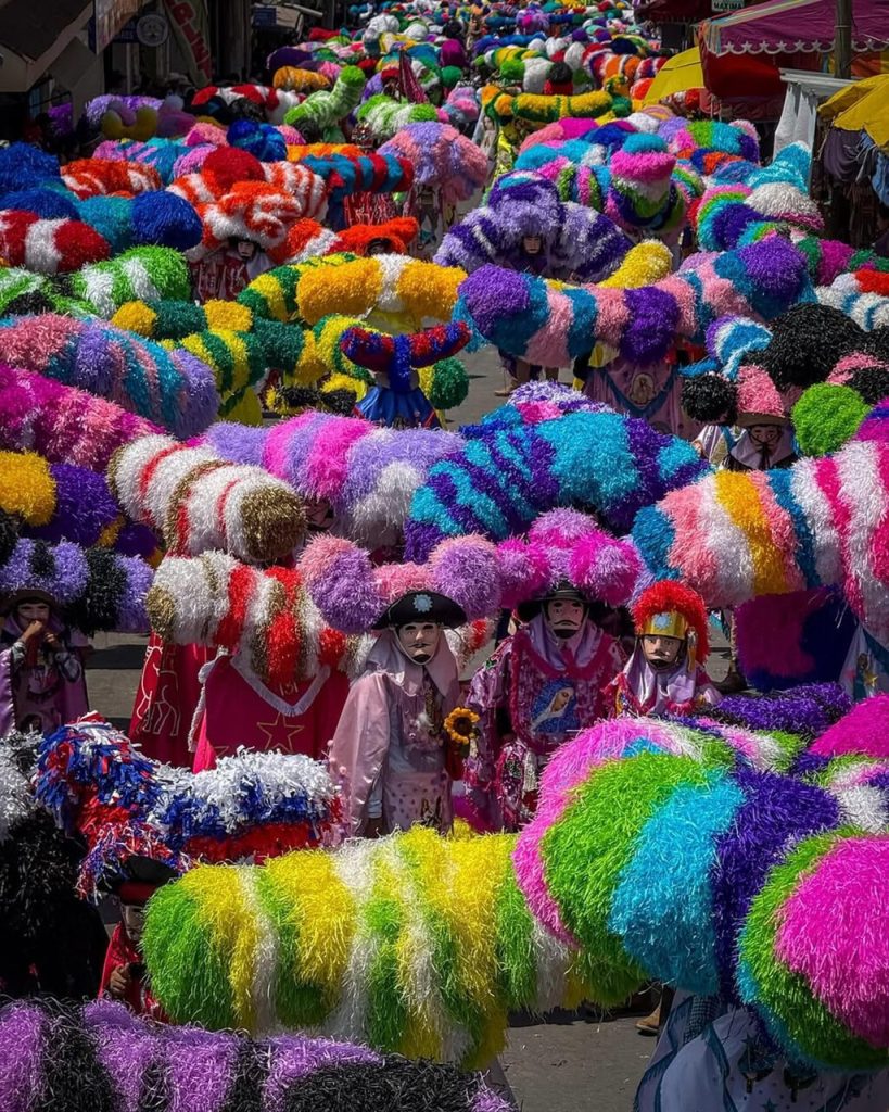 Chaque année, la Semaine sainte transforme des villages entiers en scènes vivantes de mémoire et de foi. Mais à Tetela del Volcán, petit bourg perché sur les pentes du Popocatépetl, la tradition prend une tournure spectaculaire, presque surréaliste : pas de nazarenos en habit sombre, mais des sayones coiffés de gigantesques chapeaux qui ressemblent à d’immenses chenilles multicolores. Pour les lectrices d’évasion de MadameMary.fr, voici un carnet de voyage sensoriel et attentif à cette fête unique, où artisanat, dévotion et théâtre populaire se mêlent pour donner vie à l’une des célébrations les plus étonnantes du Mexique.