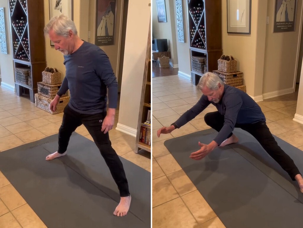 - Répétez de l’autre côté en transférant cette fois le poids sur la jambe gauche.